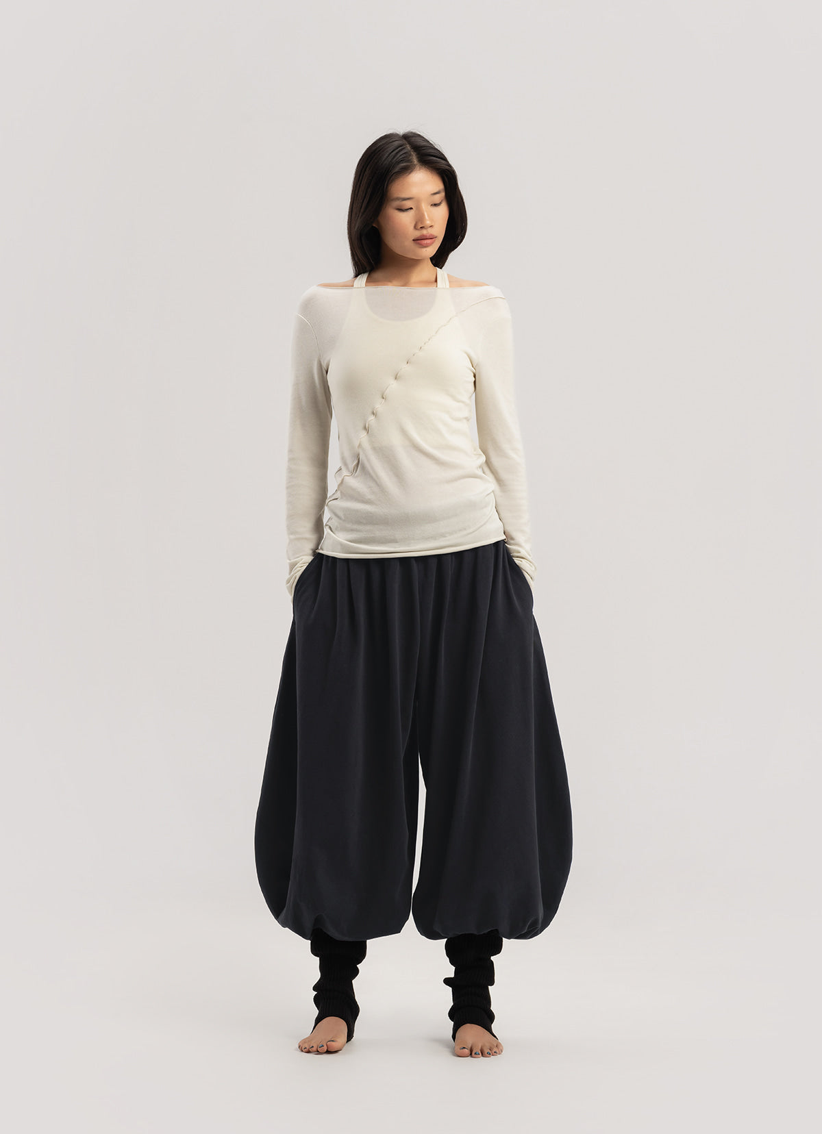 - かかと部に穴が開いており、トレンカスタイルでもご着用が可能です