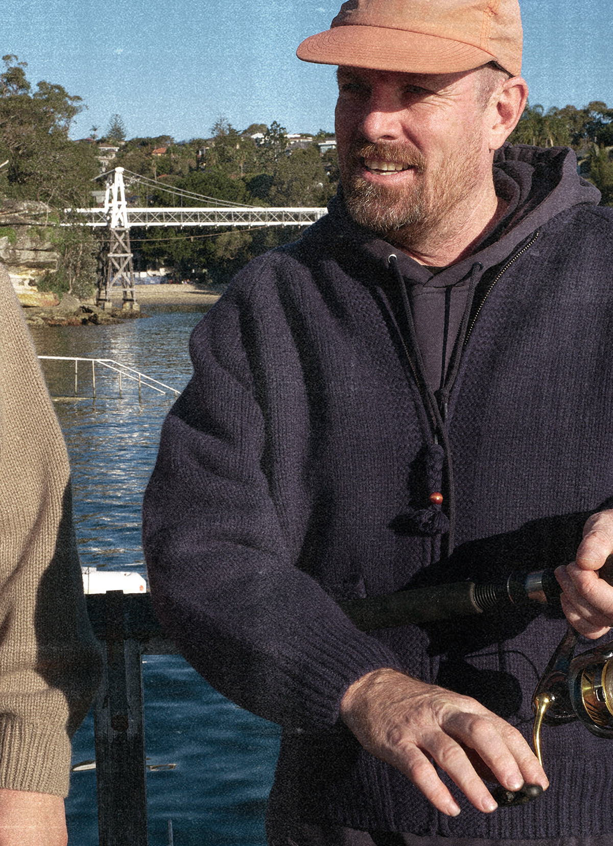 - ジッパー引手のツイストディテールとウッドボールがデザインポイント