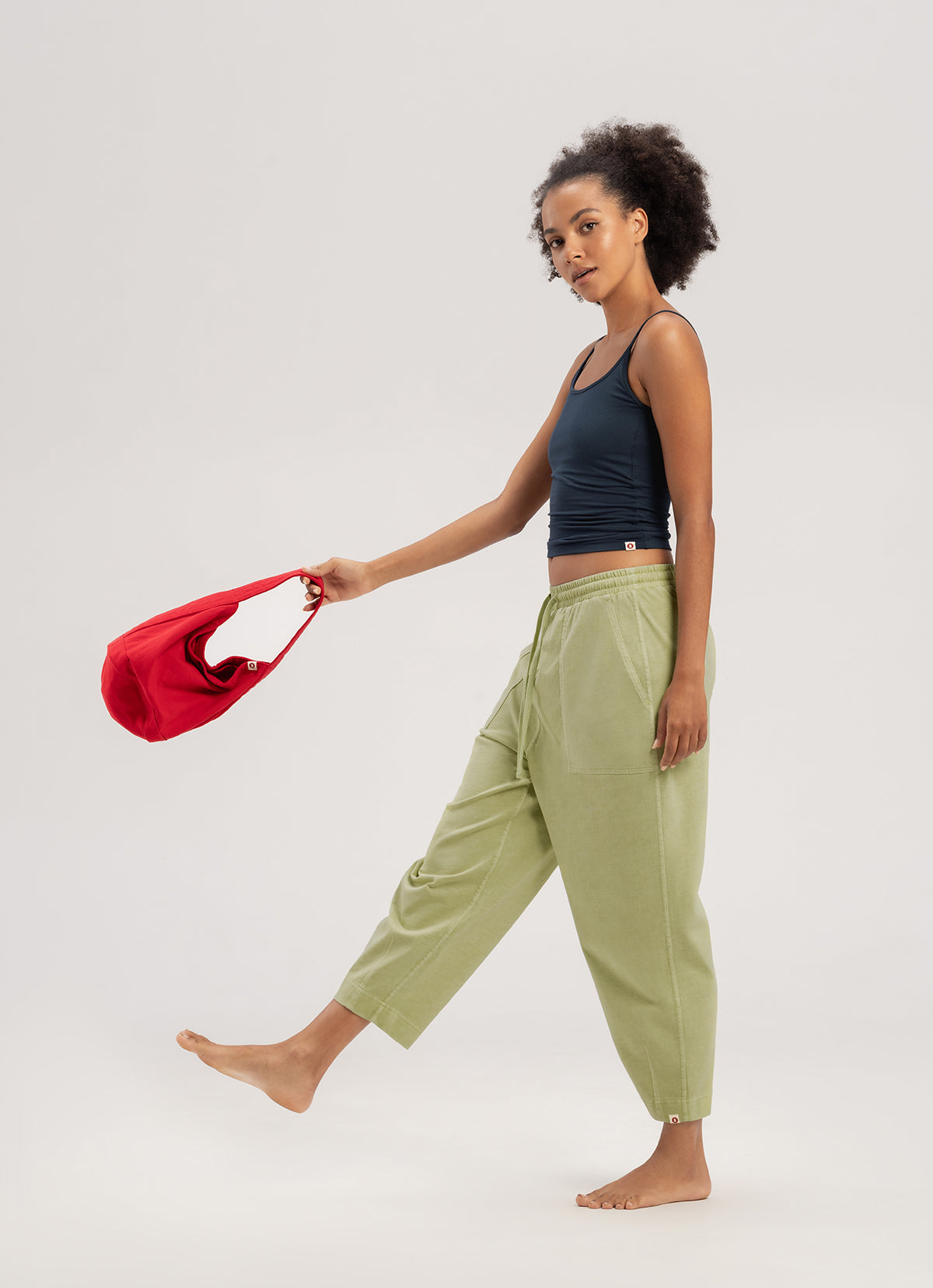 - クラシカルなデザインのタンクトップでヨガのトレーニングの前後の着用なども含め、様々なシーンで着用することができるアイテム