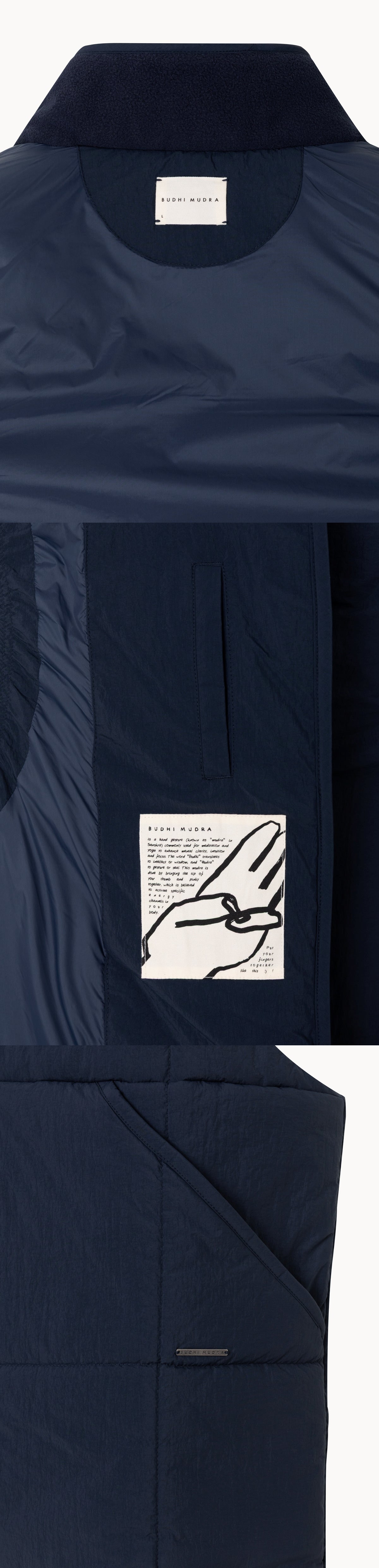 - インナーポケット、BUDHI MUDRAのロゴとラベルディテールつき