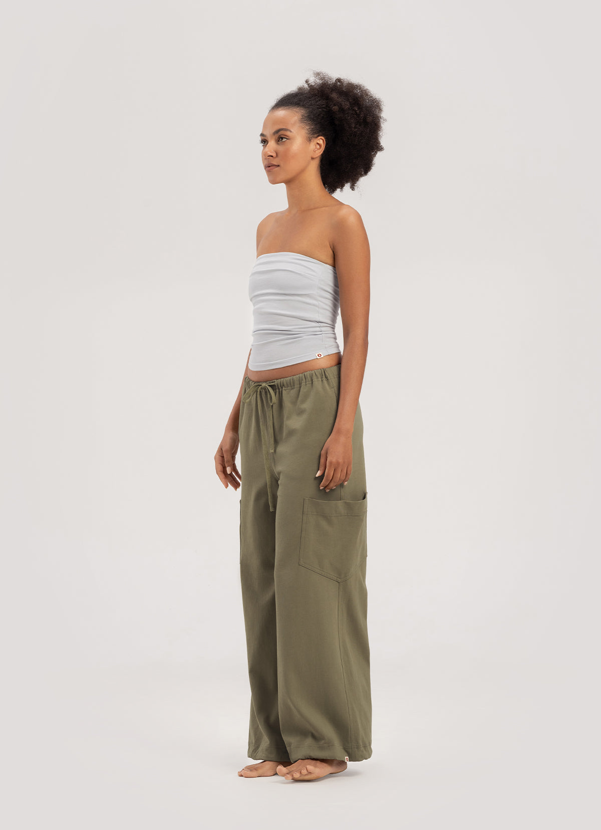- ウエストバンディングとストリング(紐)によって体型に合わせて調節が可能
