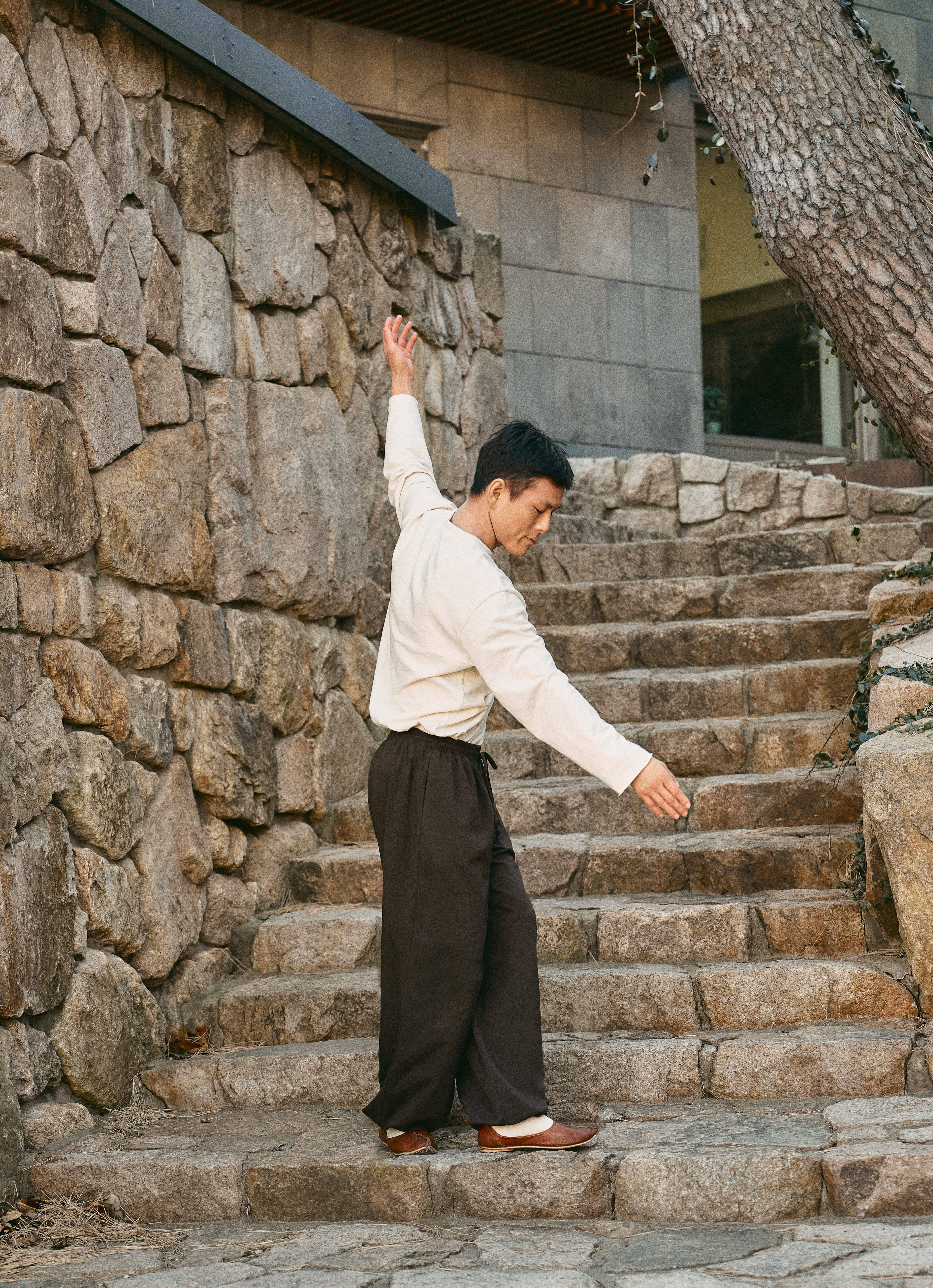 - 既存のUnisexモデルのシルエットとディテールをベースに、男性体型を考慮してフロントディテールを追加し、股上を調整、総丈はゆとりを持たせています。