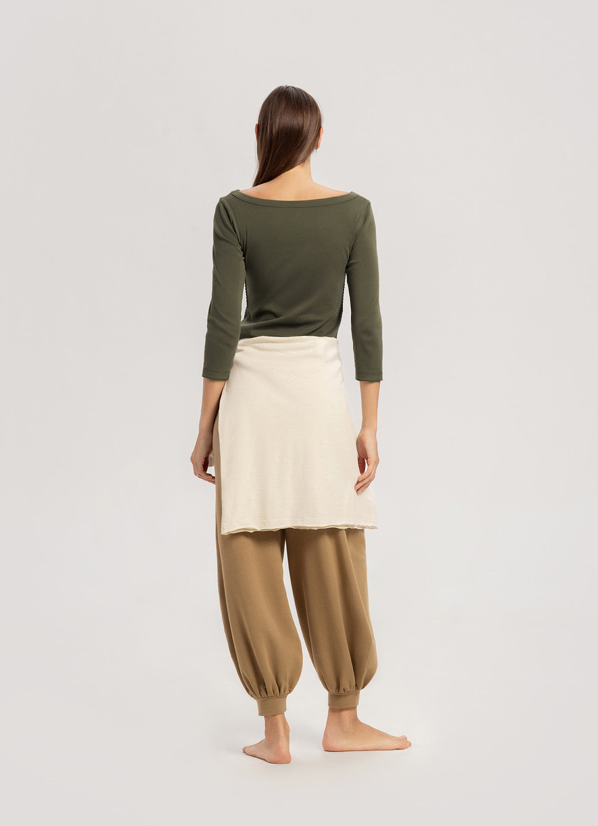 - ゴムを使わず、幅広の生地で足首を包み込む肌に優しいデザイン