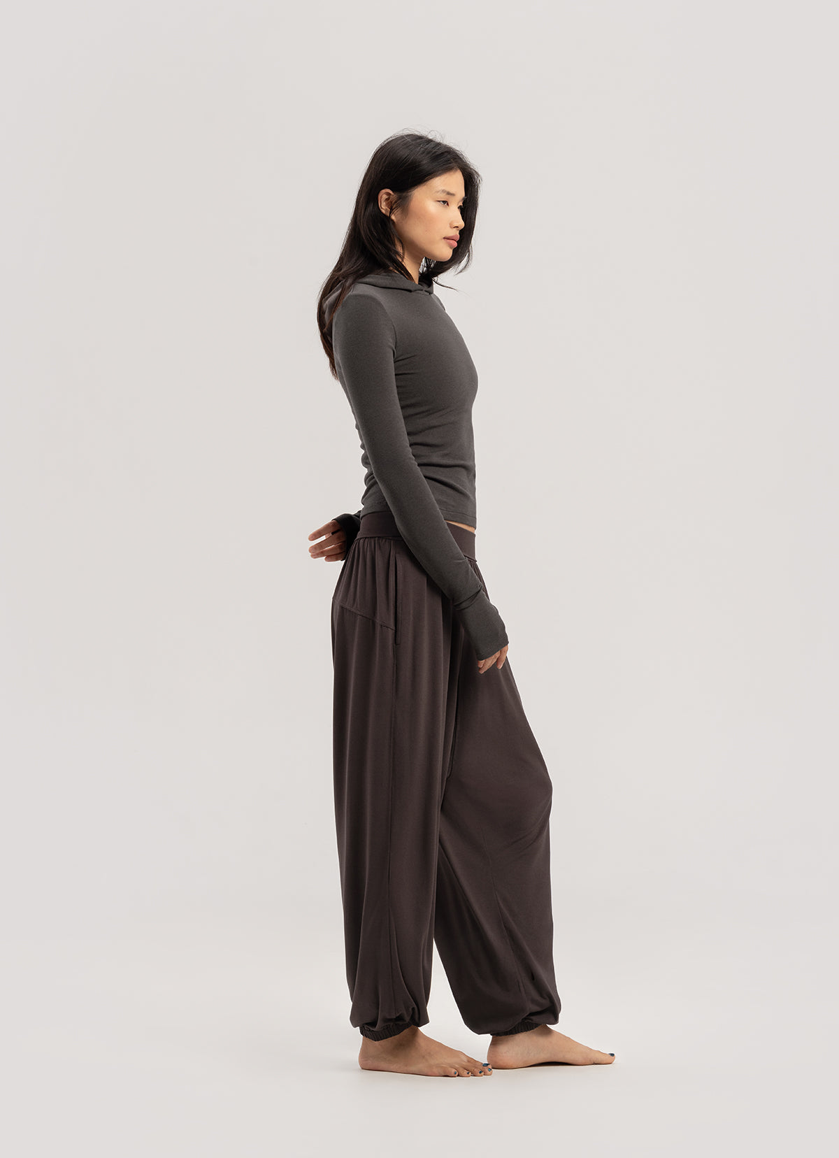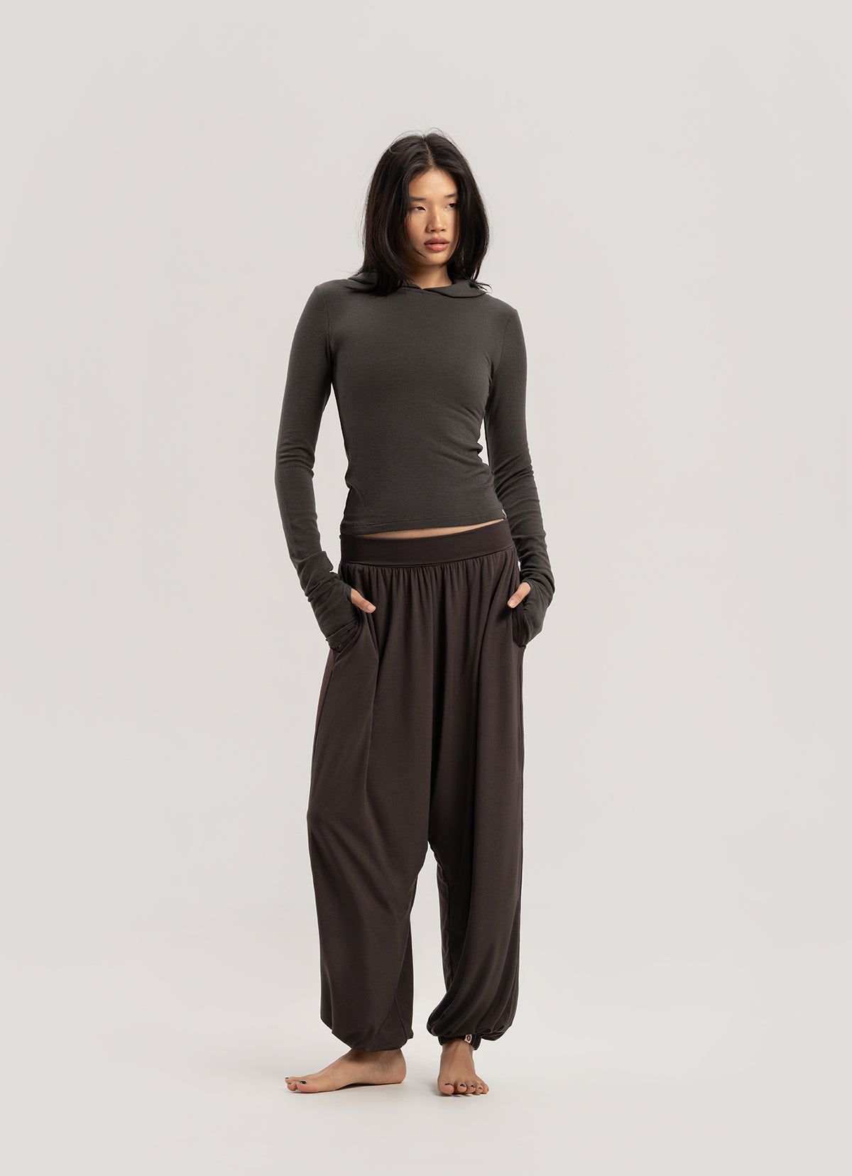 - 吸湿性に優れているため、ヨガのトレーニングの前後の着用なども含め、様々なシーンで着用することができるアイテム
